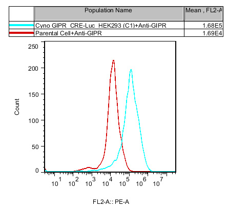III. Representative Data![]() Figure 2. Recombinant Cyno GIPR/CRE-Luc/HEK293 stably expressing GIPR. |