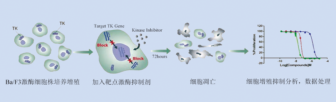 為了助力小分子藥物研發(fā),科佰開發(fā)了BA/F3系列的激酶工程細(xì)胞株,EGFR/NTRKs/RET/BCR-ABL1/KRAS/BRAF/MET靶點(diǎn)等,用于評(píng)估藥物對(duì)激酶的靶向抑制作用。