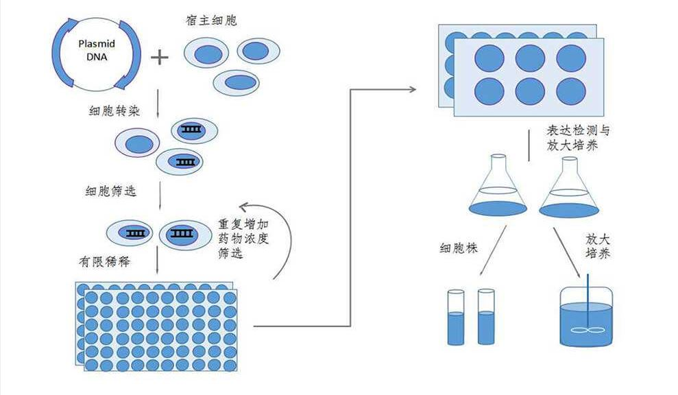 穩(wěn)定細(xì)胞株構(gòu)建的基本原理是用基因?qū)牍ぞ呋蚧蚓庉嫻ぞ?,改造原始?xì)胞基因組,使改造后的細(xì)胞具有某些特定表型,并經(jīng)過(guò)抗性篩選或其他篩選方法,使其表型能長(zhǎng)期傳代穩(wěn)轉(zhuǎn)。