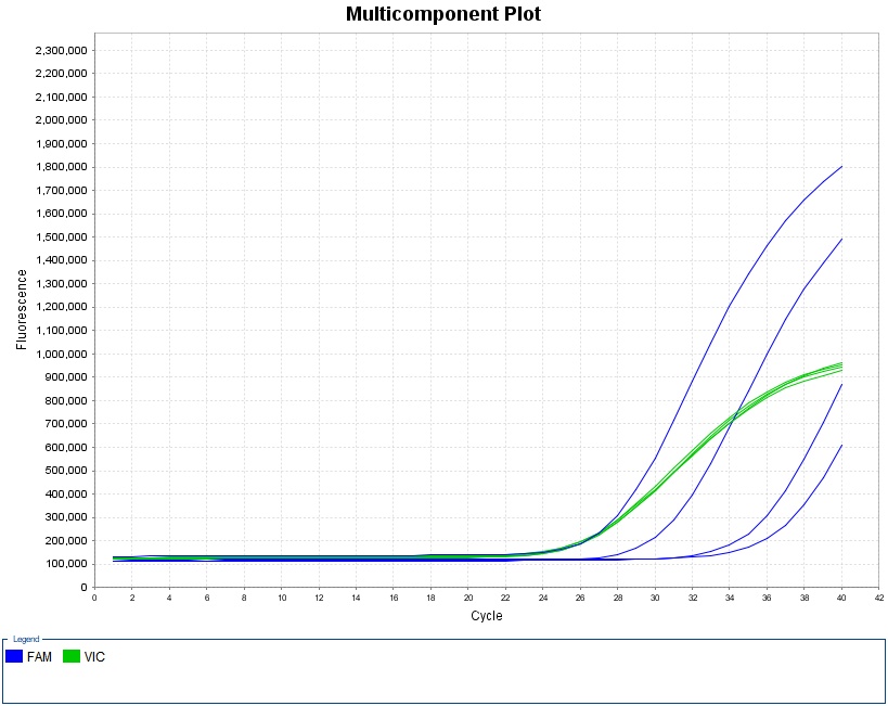 實(shí)時(shí)熒光定量PCR在檢測體系中加入熒光基團(tuán),通過PCR 擴(kuò)增反應(yīng)中每一個(gè)循環(huán)產(chǎn)物熒光信號(hào)的實(shí)時(shí)檢測,從而實(shí)現(xiàn)對(duì)起始模板的定量及定性分析。隨著PCR反應(yīng)的不斷進(jìn)行,帶熒光的PCR產(chǎn)物逐步累積,信號(hào)強(qiáng)度等比例增強(qiáng)。這樣,我們可以通過熒光信號(hào)的變化來實(shí)時(shí)監(jiān)控PCR產(chǎn)物量的變化,得到一條擴(kuò)增曲線。