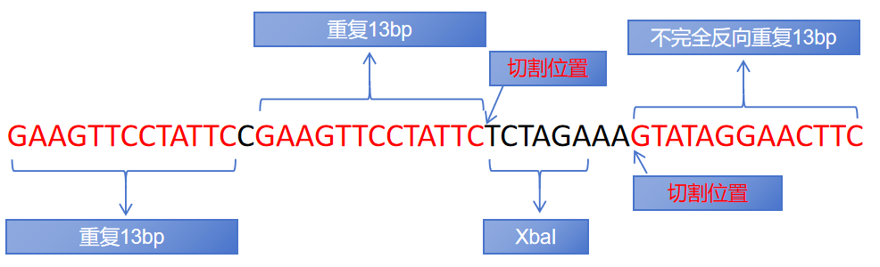 FRT: FRT(Flp Recombination Target)是Flp的識別位點,全長48bp,由3個13bp的反向回文序列和8bp的間隔序列共同組成。與間隔序列相鄰的兩個反向回文序列是Flp重組酶的識別和結(jié)合區(qū)域,間隔序列是重組發(fā)生的區(qū)域,也決定了整個序列的方向。