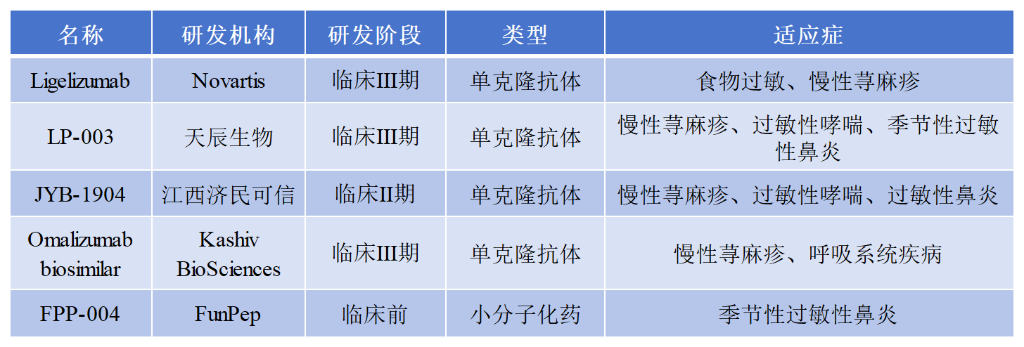 2025年3月2日,中國創(chuàng)新型生物制藥企業(yè)天辰生物醫(yī)藥(蘇州)有限公司公布了其自主研發(fā)的新一代抗IgE抗體LP-003治療慢性蕁麻疹的II期臨床中期數(shù)據(jù)。結(jié)果顯示,LP-003在關(guān)鍵療效指標(biāo)上優(yōu)于現(xiàn)有抗IgE療法奧馬珠單抗,且展現(xiàn)出長效優(yōu)勢,或?qū)⒊蔀槿蚩笽gE治療領(lǐng)域的顛覆性藥物。據(jù)報道,Ligelizumab是諾華通過親和力改造的靶向Ig E的全人源IgG1k單抗,與奧馬珠單抗同為第一代IgE抗體,對IgE/FcεRI信號傳導(dǎo)阻滯明顯增強。JYB1904是濟民可信自主研發(fā)的靶向IgE重組人源化單克隆抗體創(chuàng)新藥,研究結(jié)果顯示其親和力更高,人源化程度更高,具有更優(yōu)的穩(wěn)定性。
