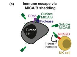 近年來(lái),也有文章揭露NKG2D的可溶性配體如MICA/B可以限制免疫檢查點(diǎn)阻斷的功效,介導(dǎo)惡性腫瘤細(xì)胞逃避免疫識(shí)別途徑。