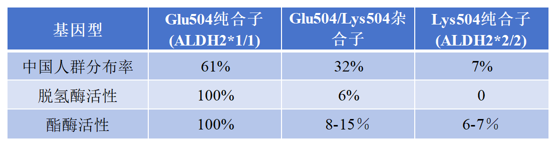 同時(shí)東方人中高發(fā)生率的急性酒精中毒也與該突變有關(guān)。突變后,酶活性缺失或者降低,導(dǎo)致乙醛在肝臟內(nèi)大量累積,會(huì)導(dǎo)致喝酒后產(chǎn)生臉紅、頭暈、心跳加速等,嚴(yán)重者甚至?xí)?dǎo)致酒精性肝病、癌癥(肝癌、消化道癌、胃癌)等不良反應(yīng)。